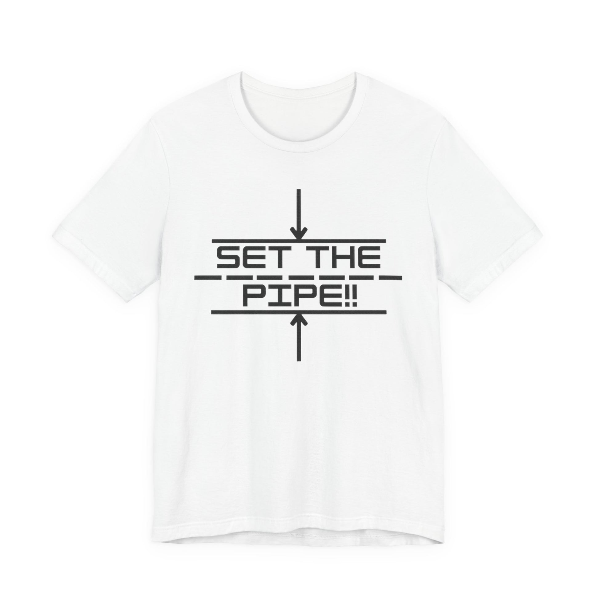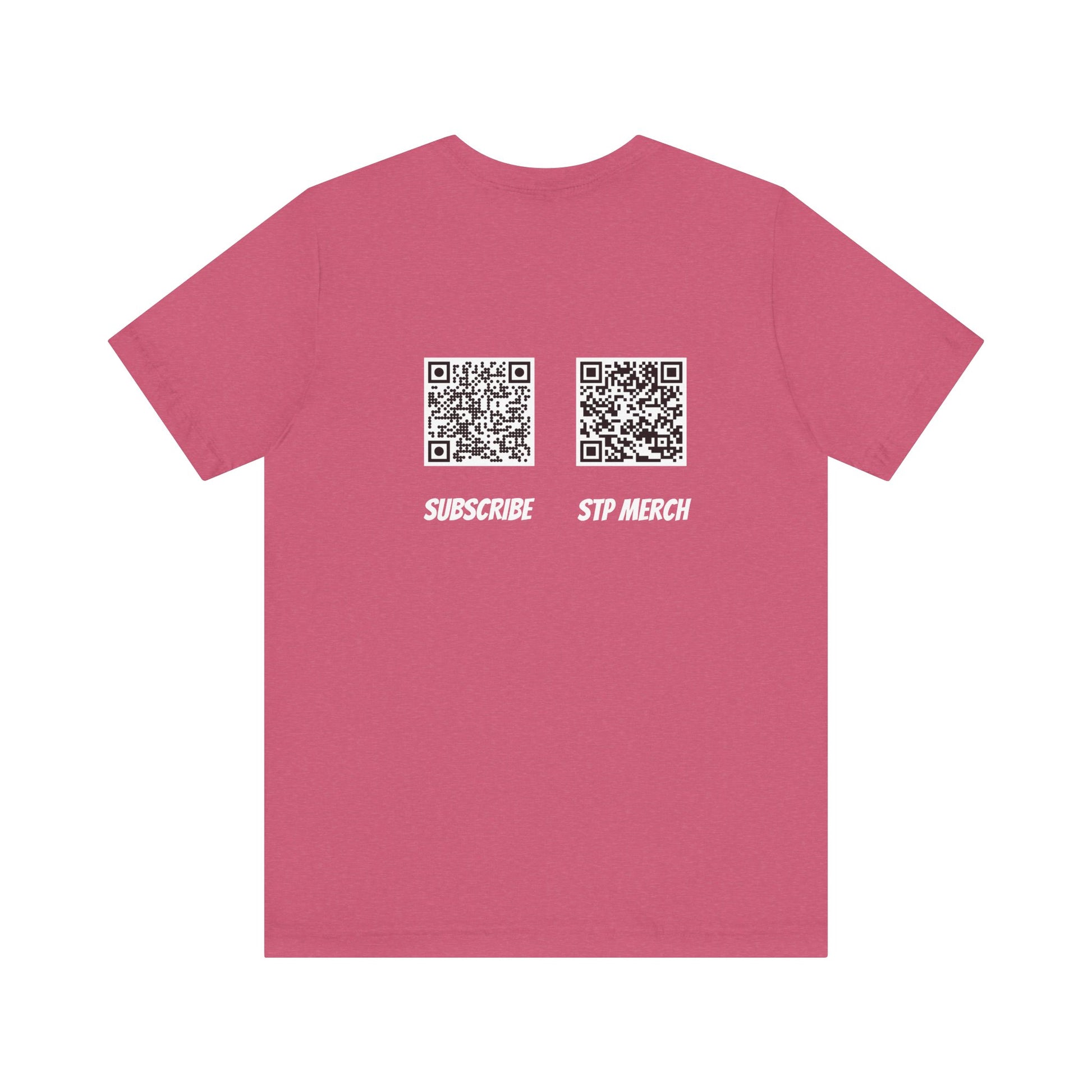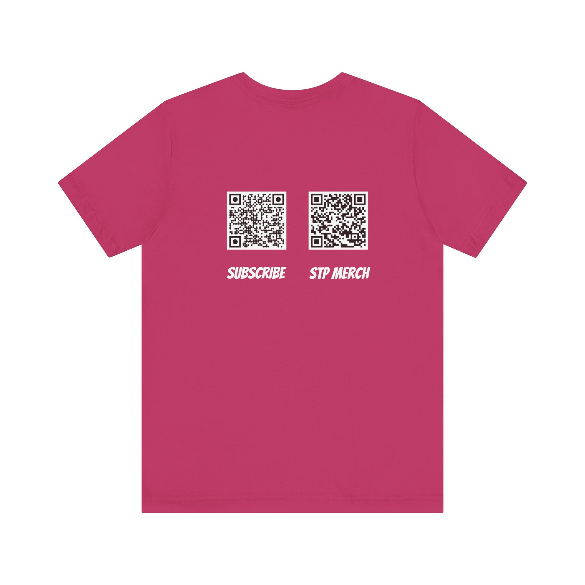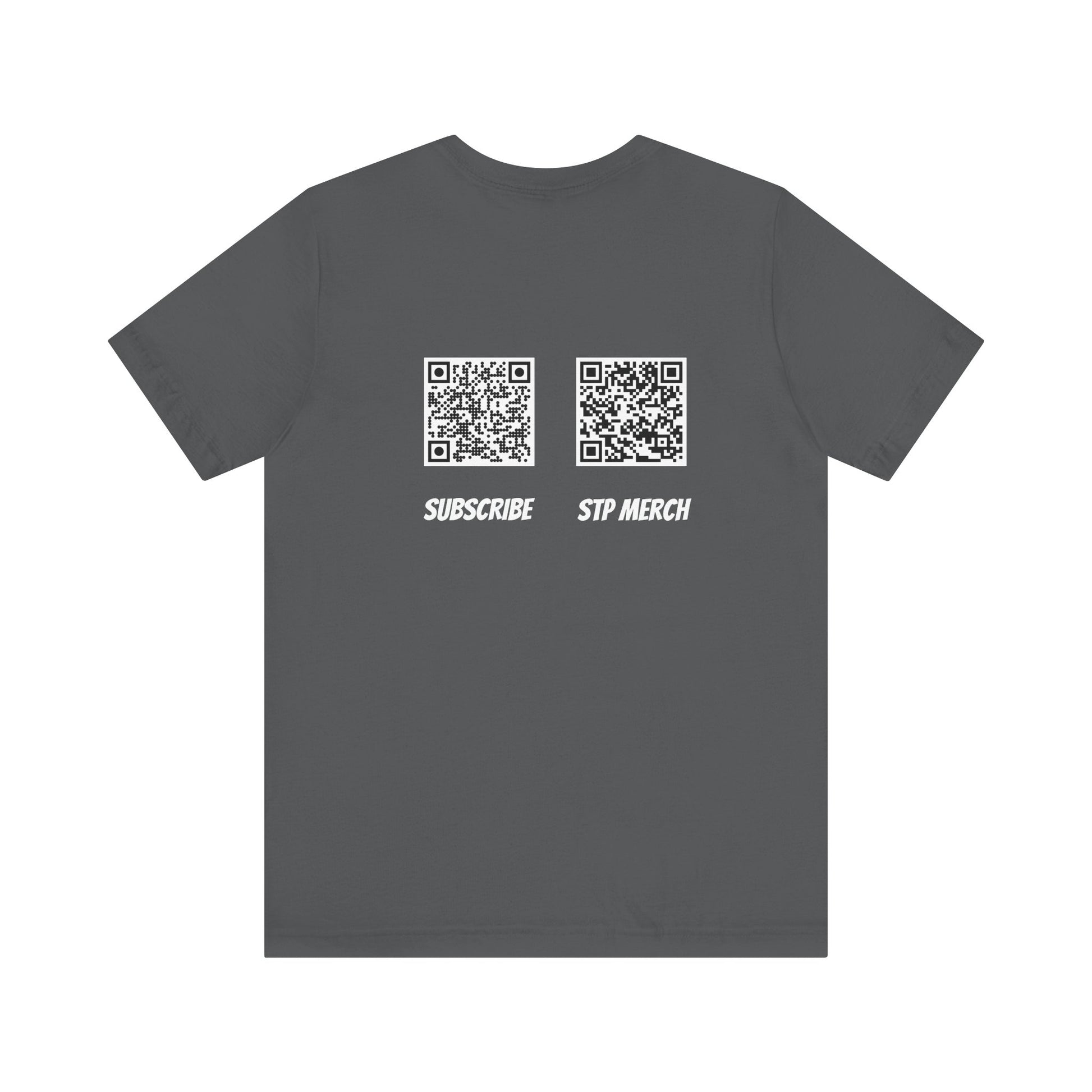 Introducing a stylish and comfortable unisex jersey short sleeve tee that brings a fresh vibe to your wardrobe. A comfortable and versatile T-Shirt featuring a unique design with Set The Pipe!! logo and QR codes on the back for our merch store and YouTube channel. This tee is perfect for casual wear and can be easily layered. Ideal for adults who enjoy unique and stylish graphic tees. Relevant for events, casual outings, and everyday wear.