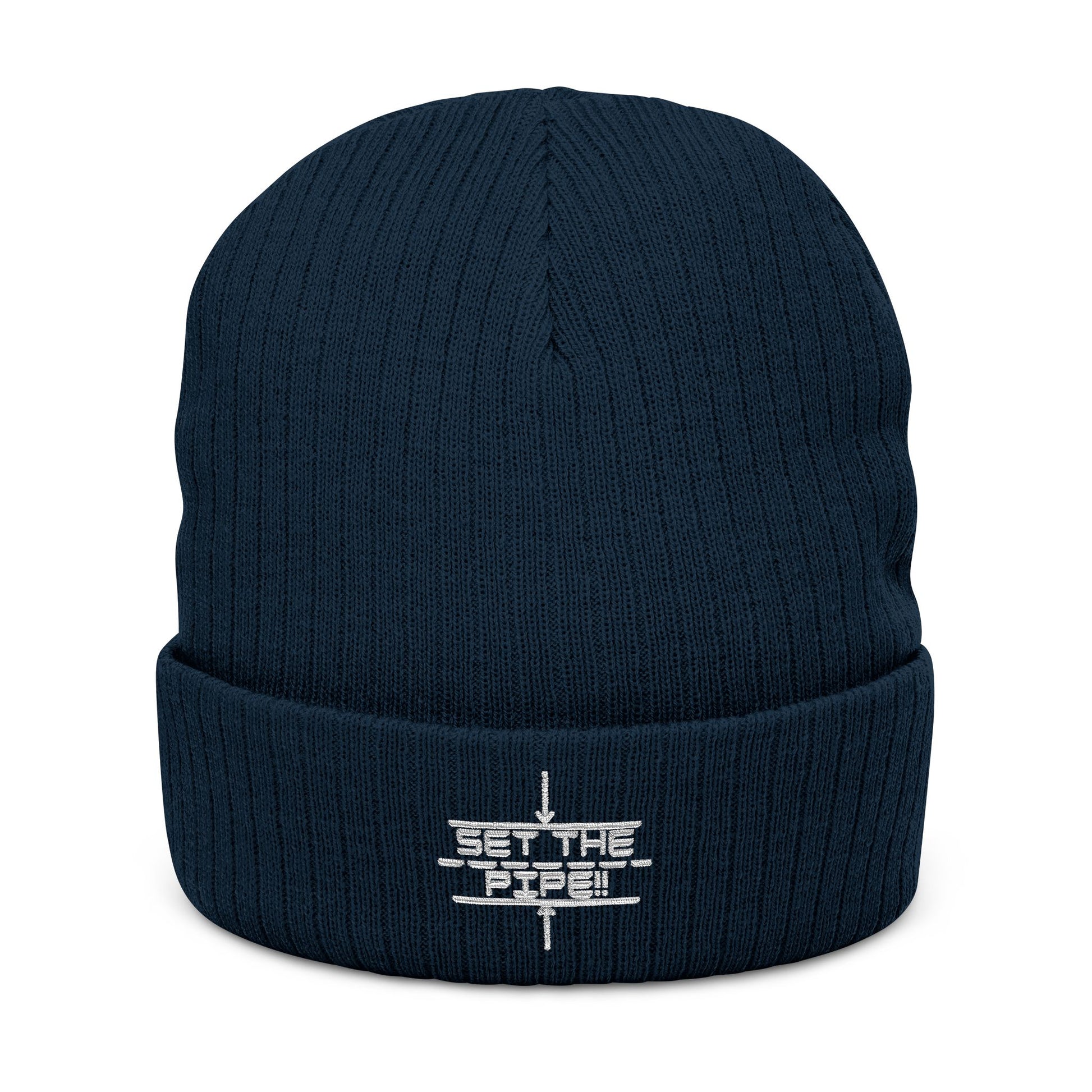 SET THE PIPE!! Embroidered Ribbed Knit Beanie